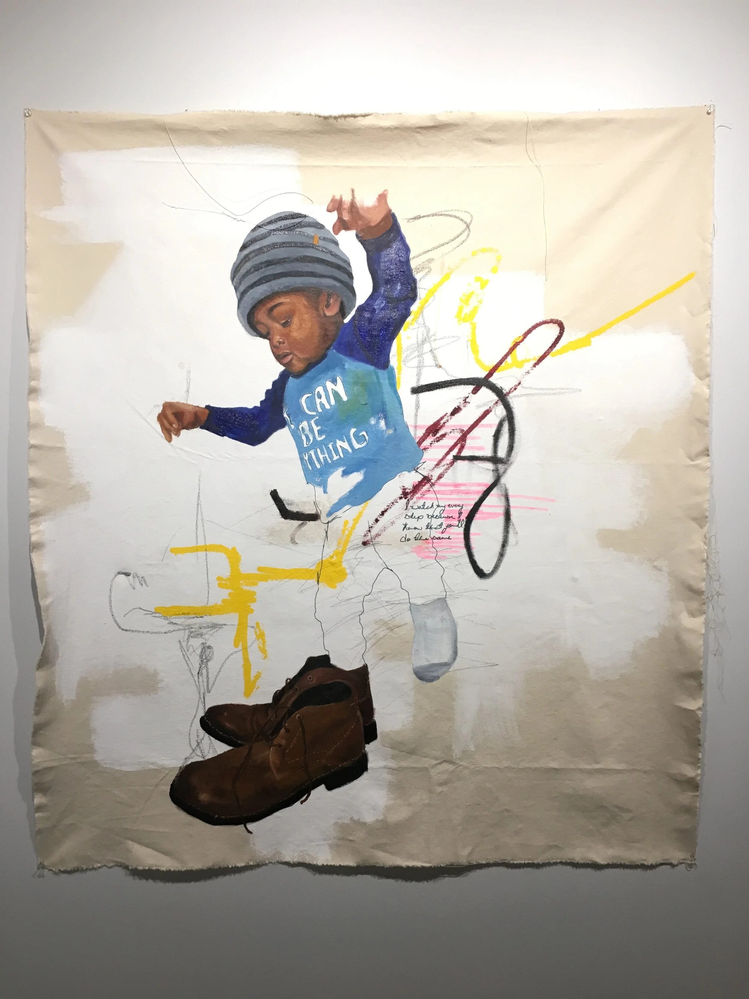 The artwork in “Daddy’s Home” explores the decisions artist Lamar Whidbee’s father made and how those choices affected the artist’s approach in raising his own son. In both cases, daddy was and is at home.
